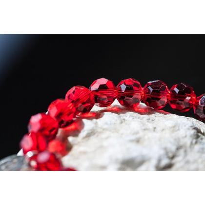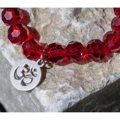 Armband aus Glasschliffperlen rot mit Om-Symbol