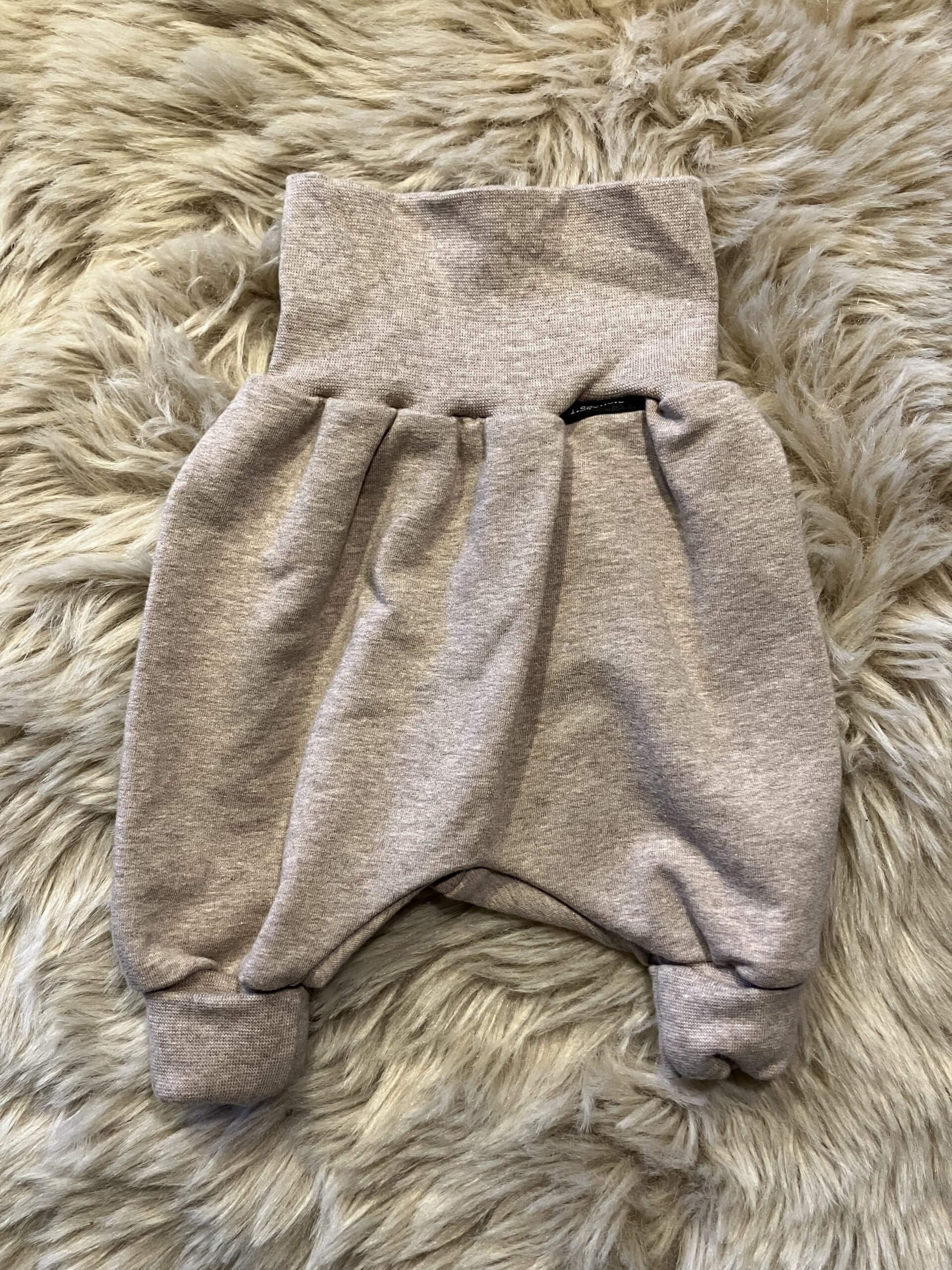 Pumphose "beige meliert" in der Größe 50/56, genäht aus Baumwollsweatstoff (95% Baumwolle, 5 % Elasthan), über zwei Größen mitwachsend, handmade im Burgenland