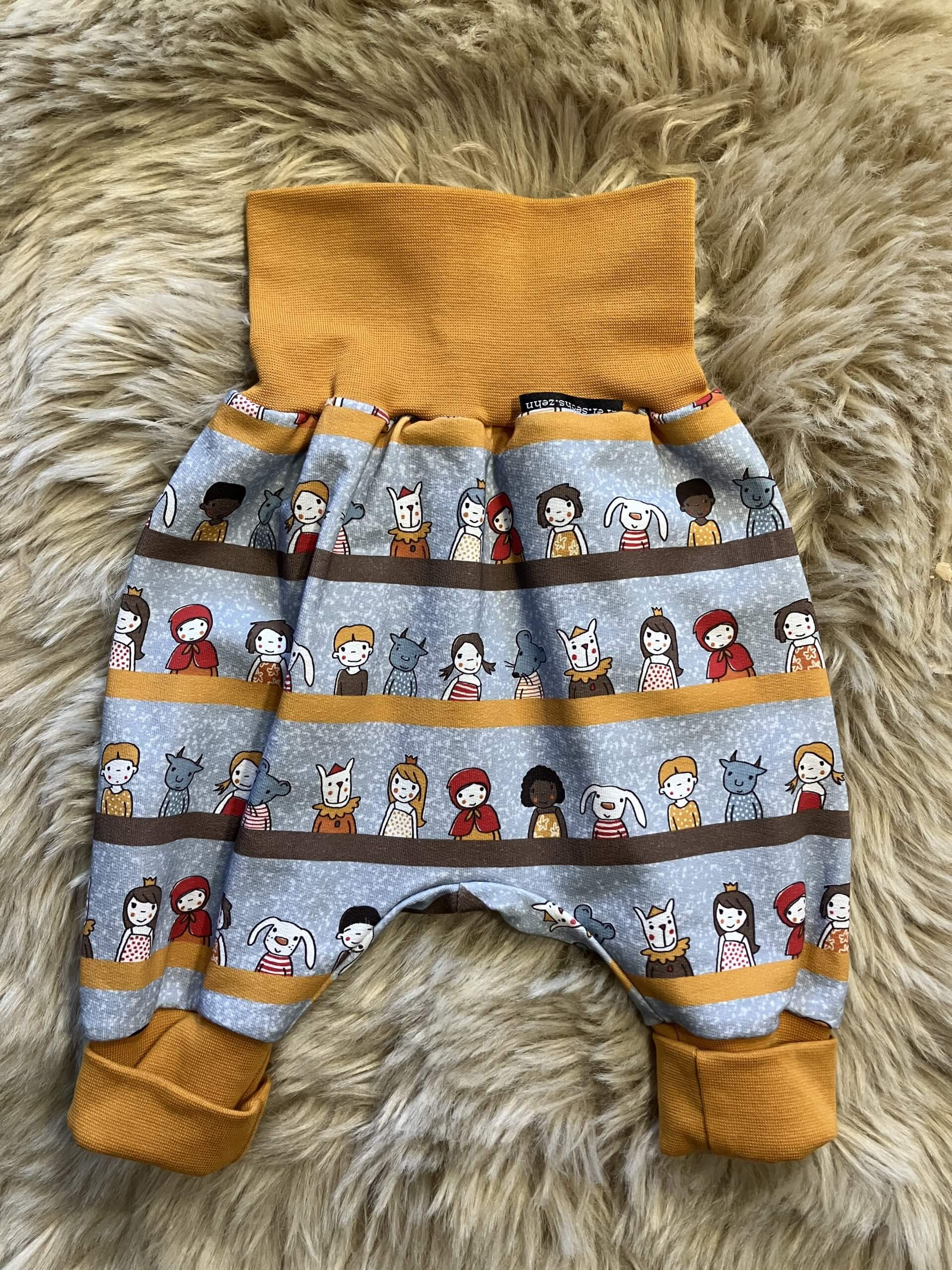 Pumphose "Kids" in der Größe 62/68, aus Bio-Baumwoll-Sweatstoff (95% Baumwolle, 5% Elasthan), genäht im Burgenland.