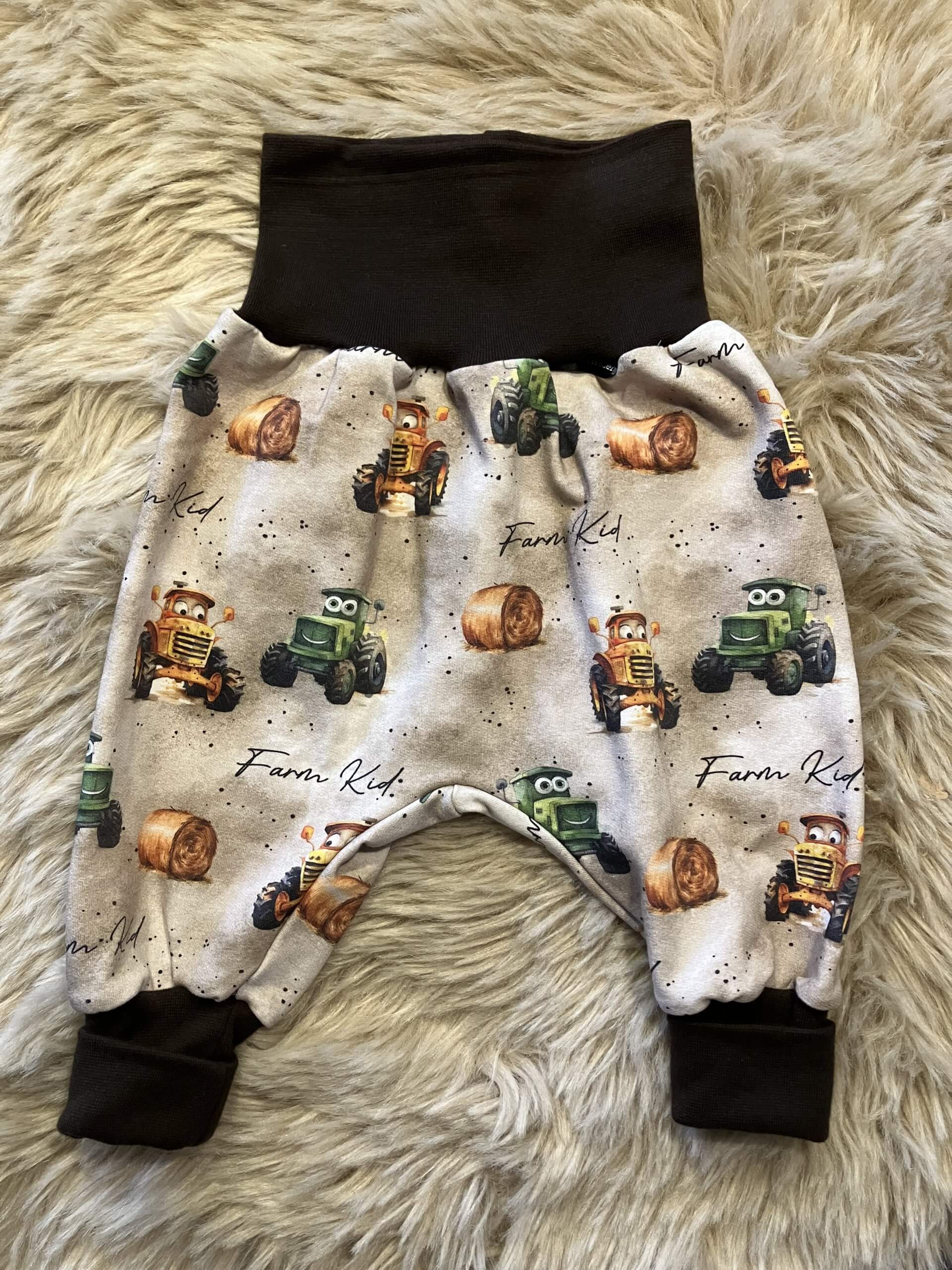 Pumphose "Farm life dunkelbraun" in der Größe 74/80, genäht aus Baumwollsweatstoff (95% Baumwolle, 5 % Elasthan), über zwei Größen mitwachsend, handmade im Burgenland