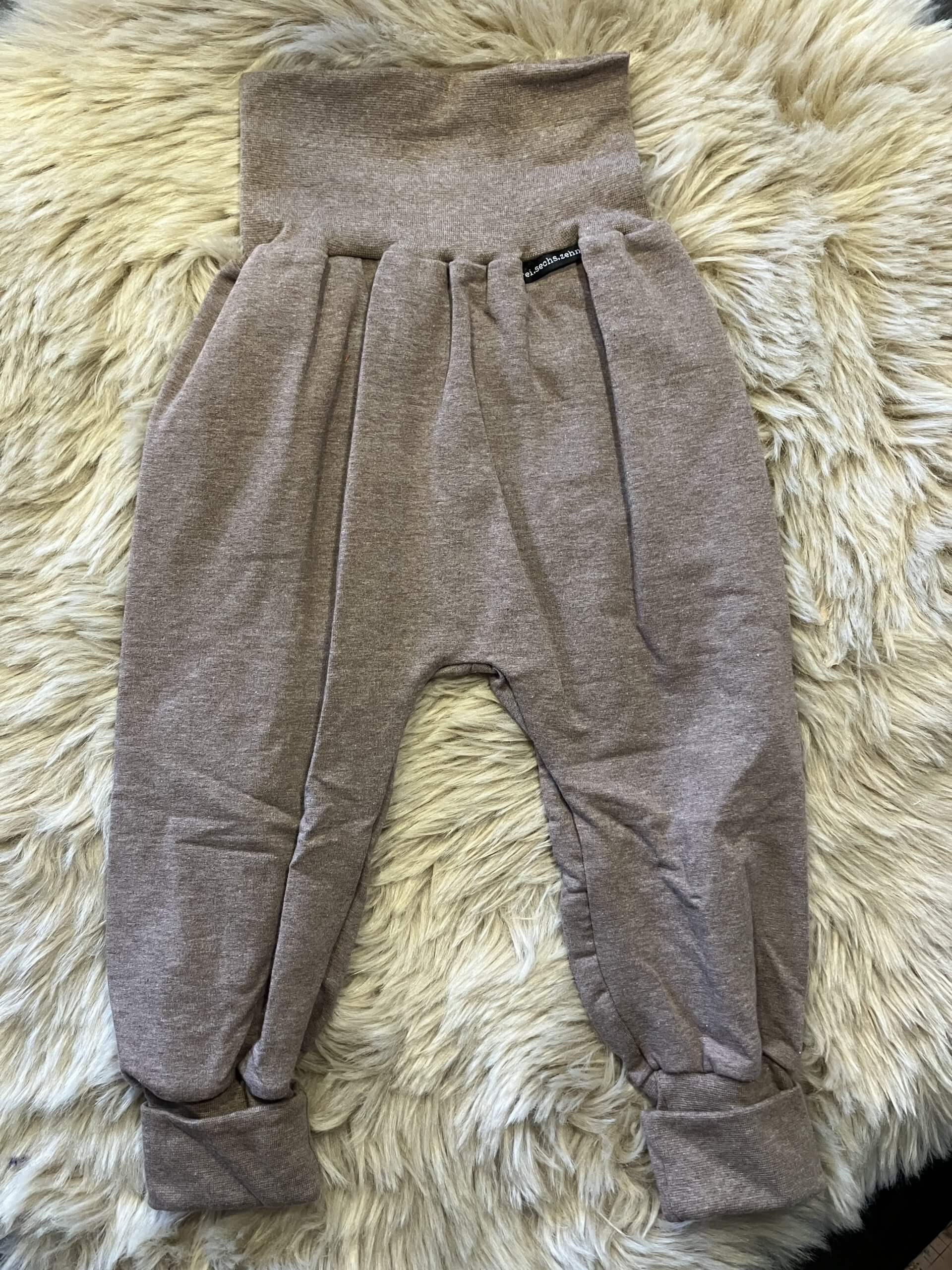 Pumphose "schlamm meliert" in der Größe 98/104. Aus Baumwollsweat, über zwei Größen mitwachsend, handmade im Burgenland.