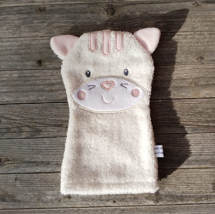 Ein ganz süßes Set habe ich hier für dich zusammen gestellt: Ein Waschhandschuh mit einer Stabrassel. Nicht nur beim Baden auch beim Spielen wird es dem Baby ein Lächeln ins Gesicht zaubern. Beides sind aus Frotteestoff genäht, ist weich und kratzt nicht. Das Gesicht ist mit der Maschine gestickt und teilweise mit Nickistoff unterlegt. In der Stabrassel ist eine kleine Rassel mit eingenäht, diese hat eine angenehme Lautstärke. Ein Schlauferl zum Aufhängen ist oben am Waschhandschuh angenäht. Wenn nicht erwünscht einfach vorsichtig abschneiden. Waschhandschuh: ca. 14 x 22cm groß Material: 90% Baumwolle, 10% Polyester waschbar bei 40°, nicht in den Trockner Rassel: ca. 13 cm groß Material: 90% Baumwolle, 10% Polyester 100% PE-Soft-Flocks als Befüllung Handwäsche