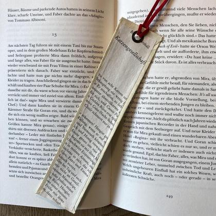 Ein altes Buch wird wieder zum Leben erweckt! Dieses Lesezeichen, gefertigt aus einem alten Buchrücken, ist ein ideales kleines Geschenk für alle Leseratten und Bücherwürmer. Katzenparadies