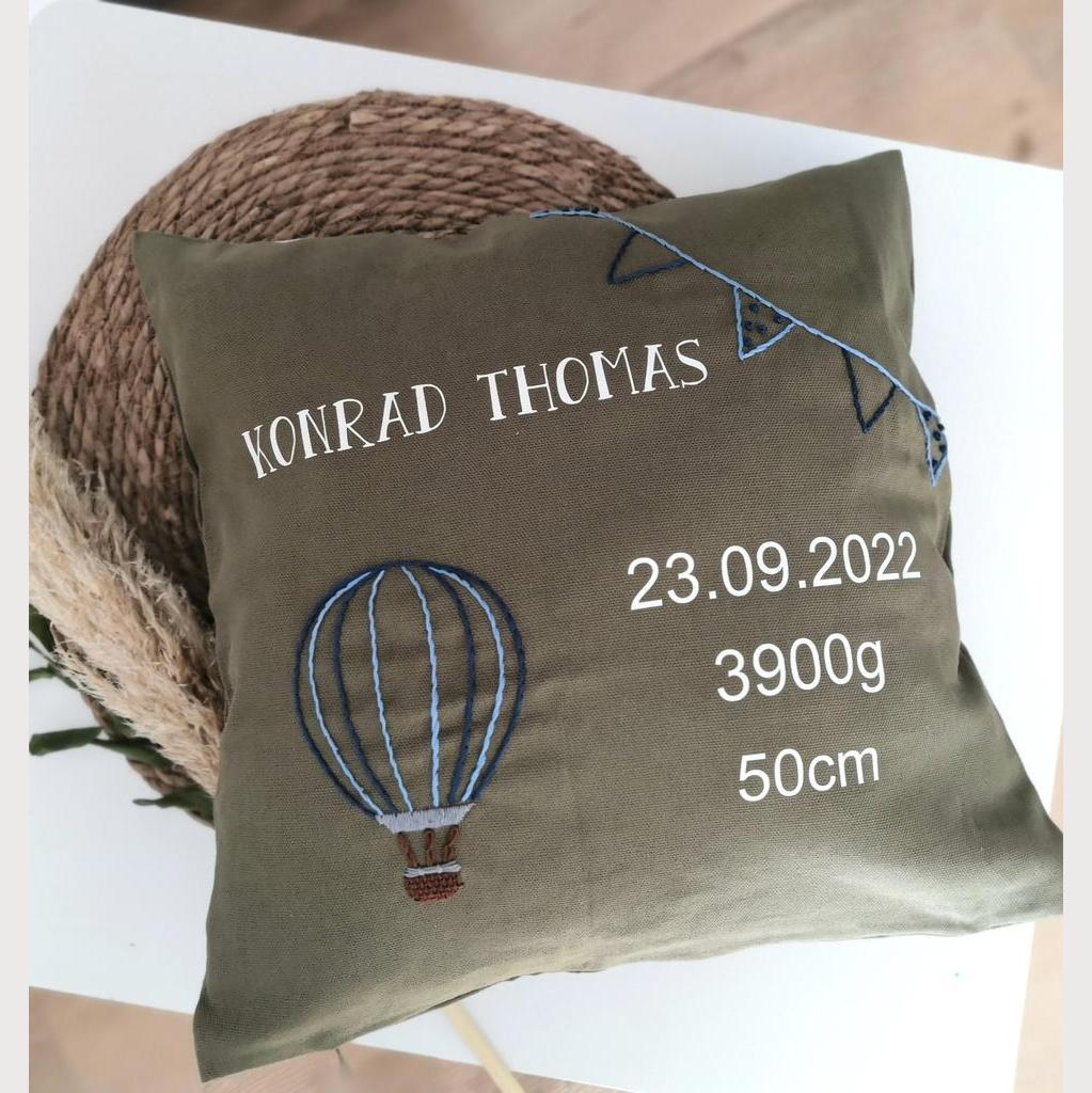 Du bist noch auf der Suche nach dem perfekten Geschenk zur Geburt. Mot diesem Geburtspolster bist du genau richtig dran. Mit Liebe bestickt und den Geburtsdaten beplottert. Größe 40x40xm Material Baumwolle