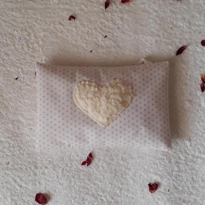 Größe: 18 cm x 12 cm Diese kleine Kompresse ist mit Hirseschalen gefüllt und kann wie eine Wärmflasche verwendet werden. Ist nicht so schwer wie Kirschkerne. Im Backrohr bei 100 °C ca. 10-15 Min. erwärmen und auf die schmerzende Stelle auflegen. Ist auch gleichzeitig ein kleines Kuschelpolsterl für die Kleinen, welches ich mit einem Herz aus Baumwollplüsch verfeinert habe. Bezug: 100 % Baumwolle Inlett: 100 % Baumwolle Füllung: biol. Hirseschalen Bezug hat einen Hotelverschluss und ist bei 30 °C waschbar.