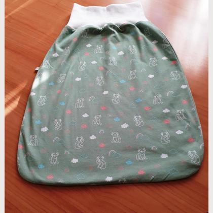 Dieser Schlafsack ist aus 100 % Biobaumwolljersey genäht, und das Futter aus 100 % Molton. Viel Freude damit!