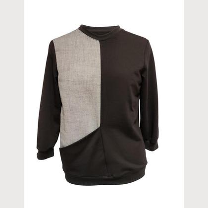 Mit Elin kommst du bequem durch den Büro-Alltag und siehst dabei trotzdem schick aus. Vorne wurde ein Webstoff mit Fischgrät-Muster vernäht, der Rest des Pullovers ist aus bequemem, dehnbarem --Bio-Sweatstoff--. Dadurch bist du in deiner Bewegungsfreiheit nicht eingeschränkt, sparst dir nerviges Bügeln und bist trotzdem „ordentlich“ angezogen. Und das Beste: Elin hat vorne eine --Tasche--! In der findet vieles Platz, wie Notizbuch, Stift, Handy… oder du nutzt die Tasche als geheimes Süßigkeiten-Lager fürs Nachmittagstief vor dem Bildschirm.