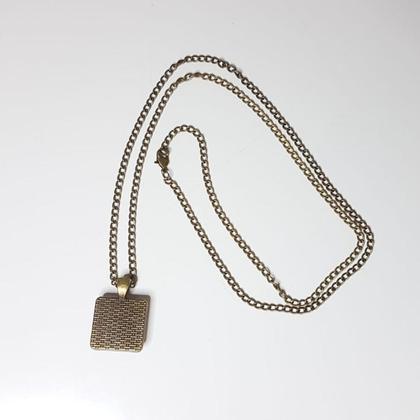 --handgemachte Halskette-- aus Messing mit mit erhabenem Glascarbochon Quadratisch 23 mm inkl. Kette (40 cm lang)