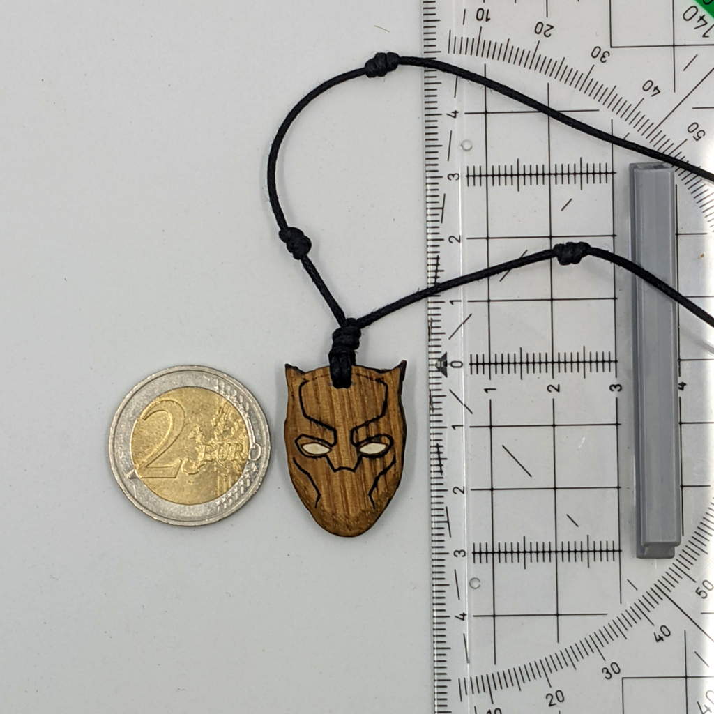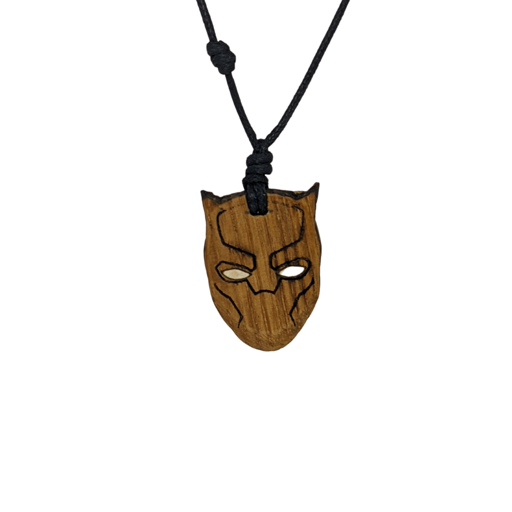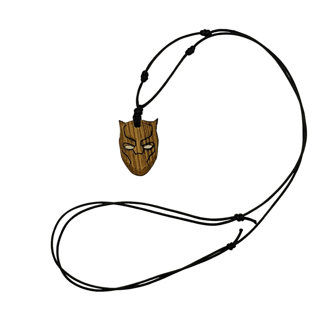 Die Halskette für alle T'Challe-Fans! Der besondere Anhänger ist - recycelt aus einem alten Mostfass - aus ca. 100 Jahre altem Eichenholz - geölt - mit Innenelementen vom abgefallenen Geweih des Damwild (daher vegan) - in Handarbeit in Wien hergestellt - Länge individuell einstellbar - Halsband aus Baumwolle Jedes Stück ist ein Unikat aufgrund der unterschiedlichen Maserung des Holzes. Die Länge des Halsbands ist mit mind. 20cm bis max. ca. 40cm mit Schiebeverschluss einstellbar. HINWEIS! Aufgrund der unterschiedlichen Maserung des Holz kann der tatsächliche Anhänger vom Bild abweichen. Auch als Schlüsselanhänger bestellbar.