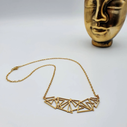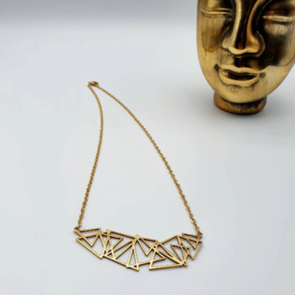 Goldene Halskette mit großem Anhänger aus Edelstahl, geometrische Formen