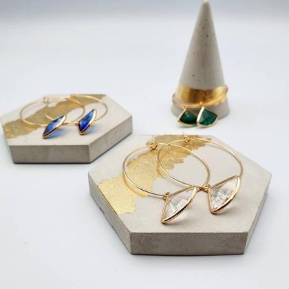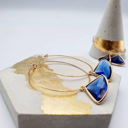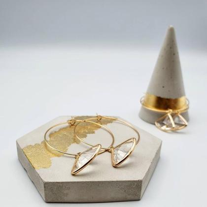 Große goldene elegante Creolen mit großen hängenden Kristallschliff Perlen