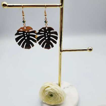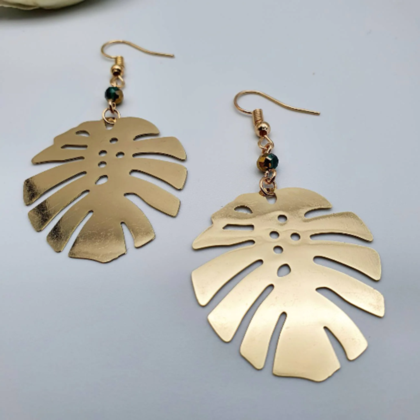 große goldene Hängeohrringe mit Monstera Blatt