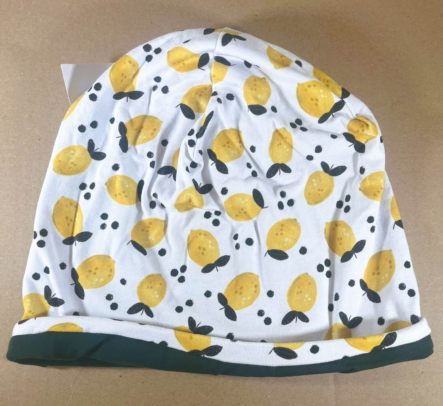 Wendehaube beige weiß mit Zitronen