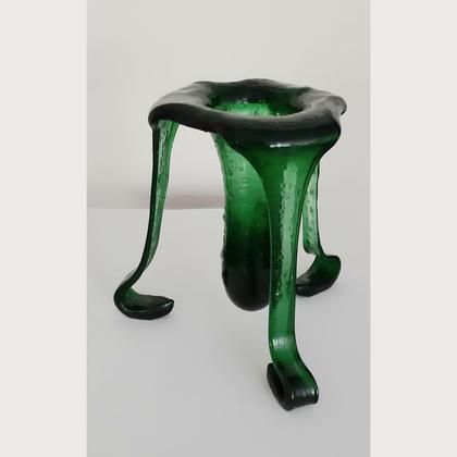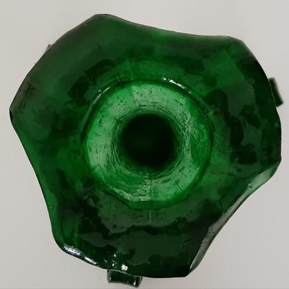 Diese extravagante Vase wurde von mir aus Weinflaschen handgefertigt. Im ersten Arbeitsgang werden die Weinflaschen zerteilt und zu einem kompakten Block verschmolzen. Die Form der Vase wird im zweiten Brennvorgang fixiert. Dieser kann bis zu 18 Stunden dauern. Die Vase ist ca. 24 cm hoch und ca. 23 cm breit bzw. tief Diese Vase eignet sich ideal als Geschenk. Durch die außergewöhnliche Form ist sie ein Blickfang in jedem Wohnzimmer.