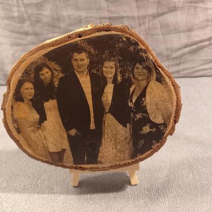 Durchmesser: 15-20 cm Breite: 1,5-2,5 cm Holzart: Erle Die perfekte Möglichkeit Fotos zu verewigen „unsere personalisierten Baumscheiben“ Fotos einmal anders. Als Geschenk oder als Andenken für mich selbst, immer eine tolle Möglichkeit. Ob Familie, Freunde oder mein Haustier, so verewigt man Schnappschüsse einmal anders. Es ist einfach ein großartiges Geschenk für einen Geburtstag, Hochzeit, Weihnachten oder einfach als kleines Mitbringsel, jeder wird sich darüber freuen. Unsere Produkte sind immer aus unserem eigenen Betrieb. Daher wächst der Baum in unseren Wald, wird gefällt und dadurch die Scheiben heruntergeschnitten. Darum ist jede Scheibe einmalig. Um ein gutes Ergebnis zu erzielen, brauche ich aber ein Bild mit hoher Auflösung. Durch Temperaturunterschiede oder Luftfeuchtigkeit können sich auch noch nach Jahren kleine Risse im Holz bilden oder Rinde abplatzen. Das ist weiteres nicht schlimm, es verleiht dem Bild einen höheren rustikalen Look. Holz ist ein Naturprodukt, das immer noch lebt. Jede Holzart hat eine eigene Ausstrahlung und Maserung. Auf der Rückseite ist ein Loch zum Aufhängen. Unsere Scheiben sind einzigartig, weil sie mit der Hand bedruckt werden. Die Holzmaserung ist noch sichtbar und die Rinde außen gibt es einen rustikalen Look. Um diesen zu unterstreichen, werden die Fotos nur schwarz-weiß darauf gedruckt. Die Seiten mit den Fotos werden mit Lack behandelt, um das Verblassen des Bildes zu verhindern und Kratzer vorzubeugen. Ein Holzständer zum Aufstellen ist auch dabei für den Fall, dass das Bild nicht aufgehängt werden soll. Bitte sendet mir das gewünschte Foto einfach per E-Mail nach der Bestellung. Falls es irgendwelche Probleme gibt, einfach mich sofort kontaktieren. E-Mail: ulrichmarieclaire3@gmail.com