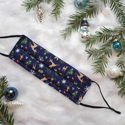 Weihnachtsmaske Rehe Blau mit verstellbarem Gummi, MNS optional mit Nasenbügel