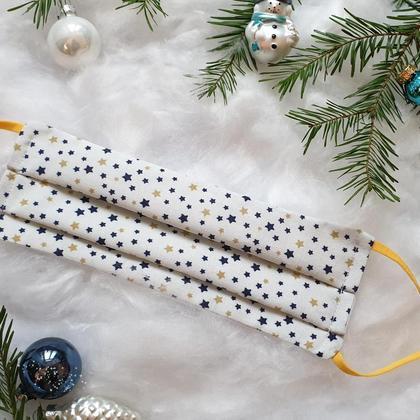 Weihnachtsmaske Sterne Blau mit verstellbarem Gummi, MNS optional mit Nasenbügel