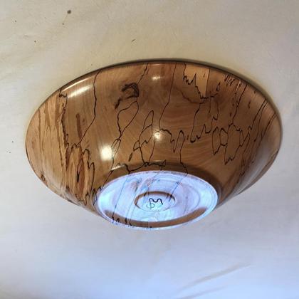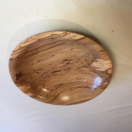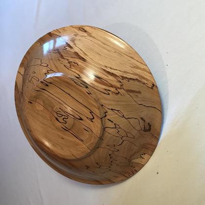 Eine aus Buchenholz, von Holzpilzen attraktiv gezeichnete, elegante Schale mit einem Durchmesser von 36 cm und 7 cm Höhe. Die Lackierung macht sie strapazfähig und unterstreicht die Zeichnung