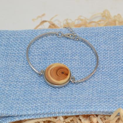 Wunderschönes Armband Edelstahl verchromt und österreichischem Eiben-Holz. Ein tolles Accessoire und absoluter Hingucker. Liebevolle Handarbeit mit Hölzern aus dem steirischen Wechselland. Größe: Durchmesser 2 cm Verschluss: Karabiner Holzart: lebhaftes Eibenholz Material: Edelstahl, verchromt Eignet sich auch wunderbar als Geschenk! Schenken Sie sich selbst oder Ihren liebsten ein Unikat aus Holz. Egal ob zu Geburtstag, Namenstag, Ostern, Weihnachten, Hochzeit, Valentinstag, Verlobung oder anderen Anlässen.