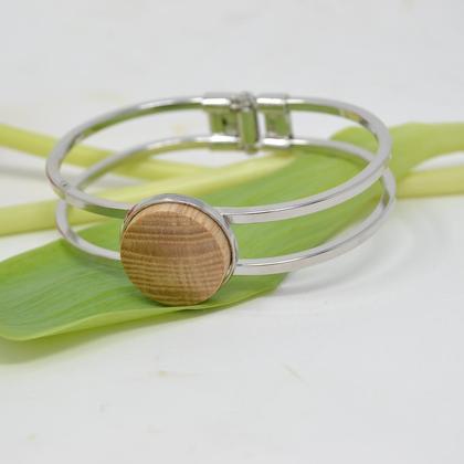 Wunderschöner Armreif aus verchromtem Edelstahl und österreichischem Eschen-Holz. Ein tolles Accessoire und absoluter Hingucker. Liebevolle Handarbeit mit Hölzern aus dem steirischen Wechselland. Größe: Durchmesser 3 cm Holzart: Esche Material: Edelstahl, verchromt Eignet sich auch wunderbar als Geschenk!