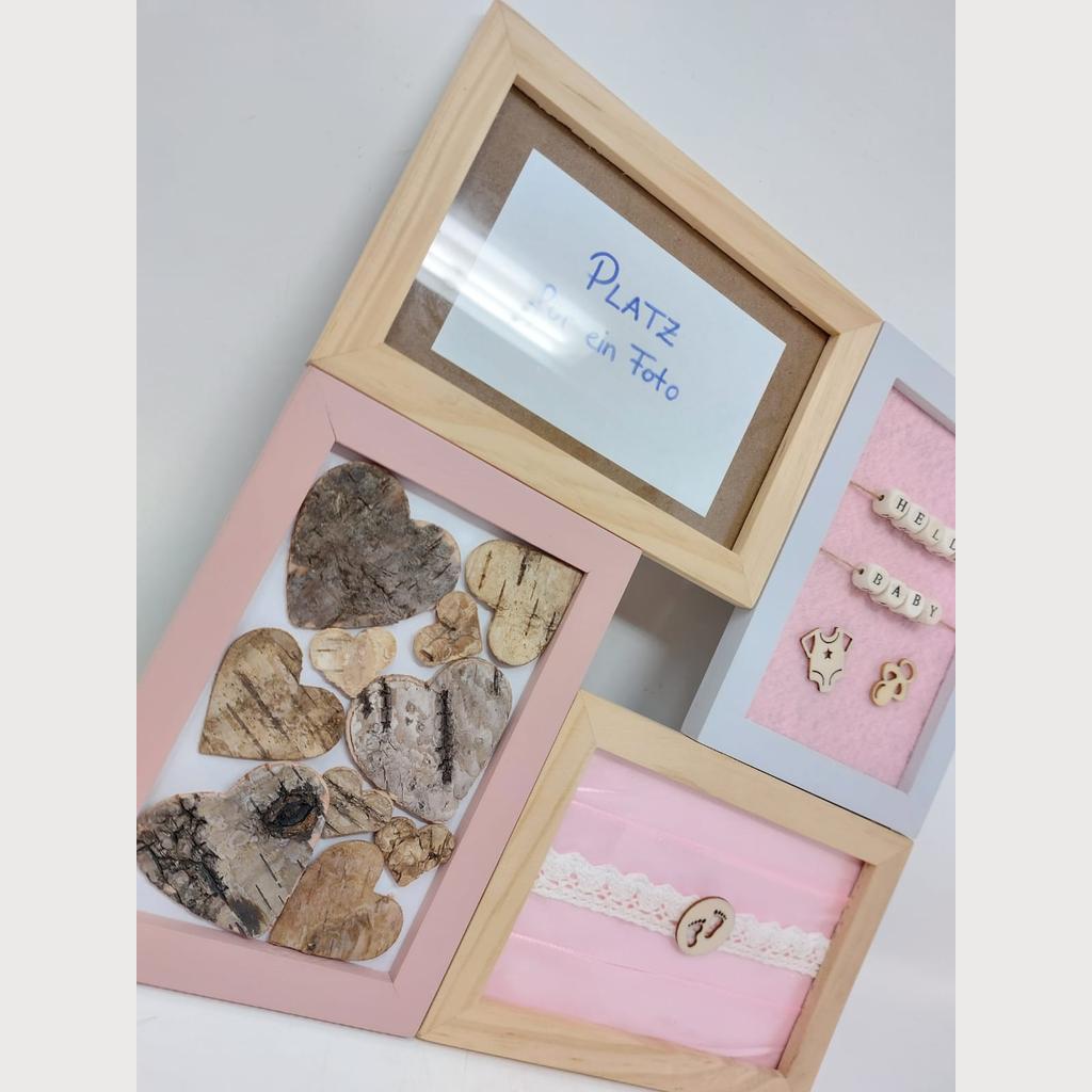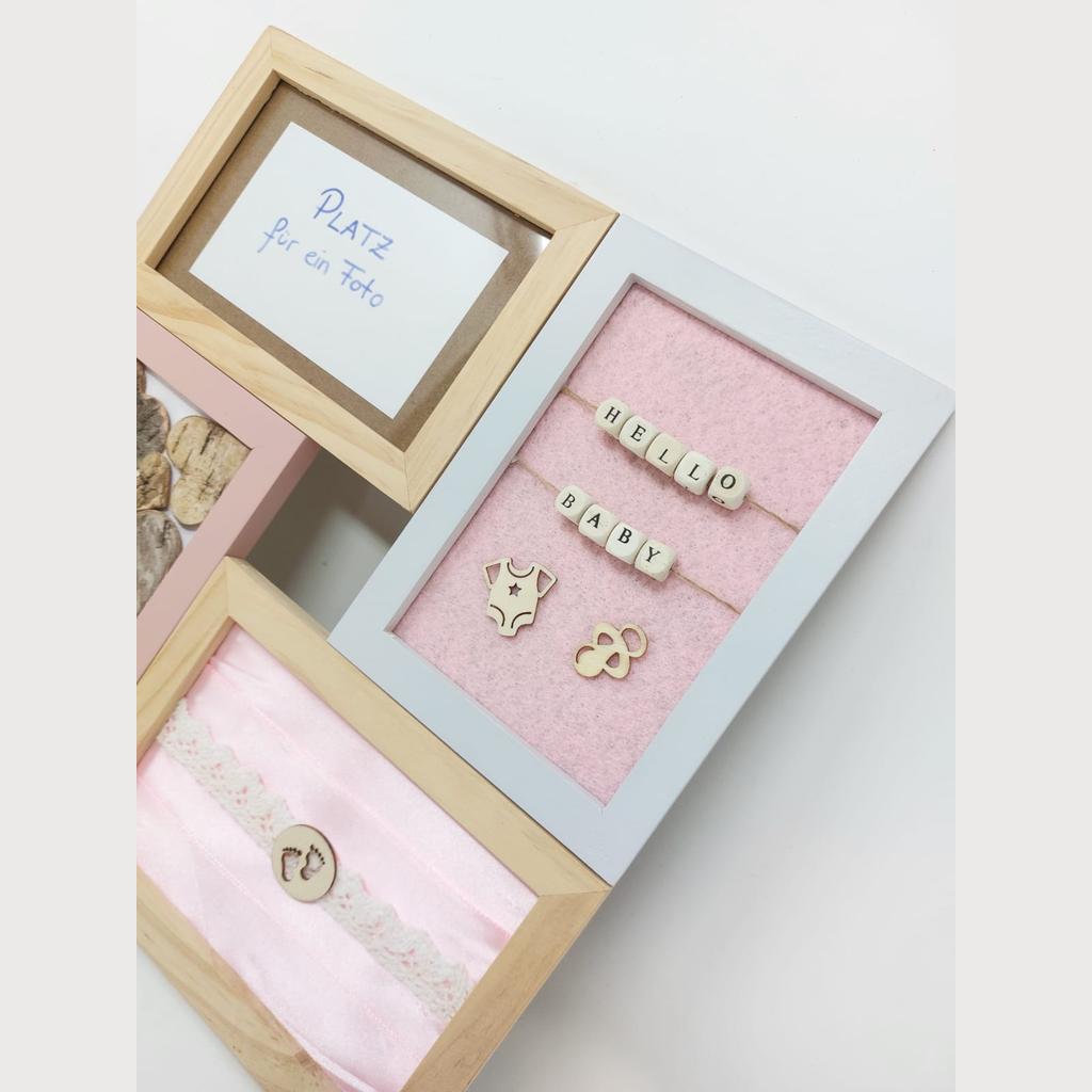 Holz Bilderrahmen Babygeschenk Geburt 28,5×28,5 cm Handarbeit