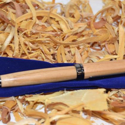Handgearbeiteter Drehkugelschreiber aus Kirschholz. Eine tolle Geschenksidee zum Geburtstag, Weihnachten oder anderen Anlass. Holzart: Kirsche Mine: problemlos wechselbar Oberfläche fein geschliffen, lebensmittelecht geölt & versiegelt. Dadurch ist dauerhafter Schutz gewährleistet. Bausatzfarbe: gun metallic Handarbeit Lieferung erfolgt im handgefertigtem Stoff-Täschchen Länge ca. 14 cm --Achtung: Gegen Aufpreis von 8 € auch Wunschgravur (Namen, etc...) möglich - einfach bei der Bestellung bekanntgeben.-- Jede Füllfeder ist ein absolutes Unikat und ein ideales Geschenk.