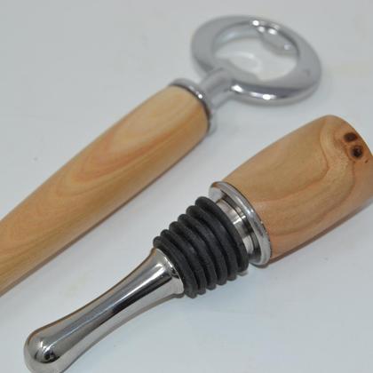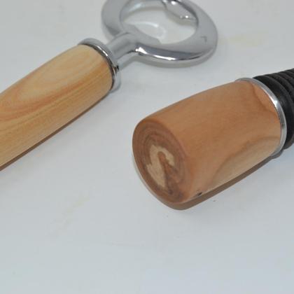 Holz Flaschenöffner Weinstöpsel Set Kirsche Bieröffner Geschenkset handmade