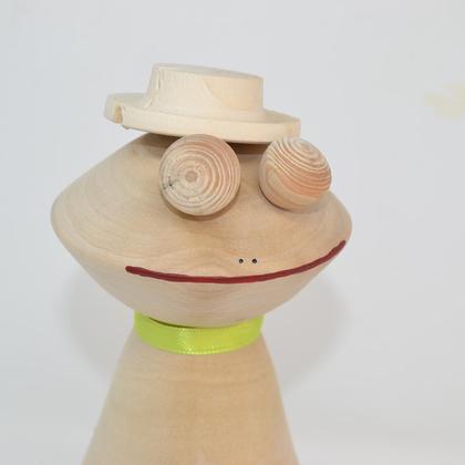 Schöne Holzdeko für Haus und Garten. Lustiger Holz Frosch mit Hut, gefertigt aus österreichischem Holz.  Holzart wird zufällig ausgewählt. Höhe ca. 20 cm Handgefertigt. Oberfläche fein geschliffen, naturbelassen.