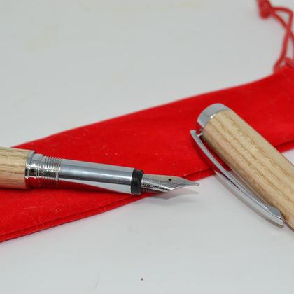 Handgearbeitete Füllfeder, handgefertigt aus österreichischem Eschen-Holz. Ein absolutes Unikat aus dem oststeirischen Wechselland! - hochwertiger Bausatz - Tintenkammer mit Platz für 2 Patronen - Lieferung erfolgt im handgefertigtem Stoff-Täschchen - Länge ca. 13.5 cm, Bausatz Farbe chrom Die Oberfläche des Holzes wurde fein geschliffen, anschließend lebensmittelecht versiegelt und poliert. Dadurch ist dauerhafter Schutz gewährleistet. Jedes Schreibgerät ist ein absolutes Unikat und ein ideales Geschenk. Eine tolle Geschenksidee zum Geburtstag, Weihnachten oder anderen Anlass.