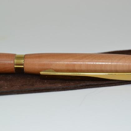 Handgearbeiteter Kugelschreiber, handgefertigt aus österreichischem Birnen-Holz. In seinen Schattierungen und Farbspielen einmalig! Ein absolutes Unikat! Eckdaten: Mine problemlos wechselbar Tintenfarbe schwarz Lieferung erfolgt im handgefertigtem Stoff-Täschchen Länge ca. 13.5 cm, Bausatz Farbe gold. Die Oberfläche des Holzes wurde fein geschliffen, geölt und poliert. Dadurch ist dauerhafter Schutz gewährleistet. Jeder Kugelschreiber ist ein absolutes Unikat und ein ideales Geschenk. Eine tolle Geschenksidee zum Geburtstag, Weihnachten oder anderen Anlass.