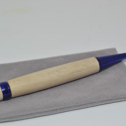 Handgearbeitete Kugelschreiber, handgefertigt aus österreichischem Hainbuchen Holz. Ein absolutes Unikat! Eckdaten: Wechselbare Mine, Schriftfarbe schwarz Lieferung erfolgt im handgefertigtem Stoff-Täschchen Länge ca. 13.5 cm, Bausatz Farbe blau/chrom. Die Oberfläche des Holzes wurde fein geschliffen, anschließend lebensmittelecht geölt und poliert. Dadurch ist dauerhafter Schutz gewährleistet. Jedes Schreibgerät ist ein absolutes Unikat und ein ideales Geschenk. Eine tolle Geschenksidee zum Geburtstag, Weihnachten oder anderen Anlass.