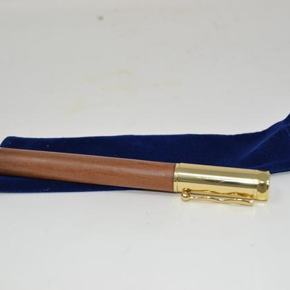 Handgearbeiteter Rollerpen mit Magnetkappe, handgefertigt aus österreichischem Apfel-Holz. Ein absolutes Unikat! Mine problemlos wechselbar Tintenfarbe schwarz Oberfläche fein geschliffen, geölt und versiegelt Lieferung erfolgt im handgefertigtem Stoff-Täschchen Länge ca. 13.5 cm, Bausatz Farbe vergoldet Jeder Kugelschreiber ist ein absolutes Unikat und ein ideales Geschenk. Eine tolle Geschenksidee zum Geburtstag, Weihnachten oder anderen Anlass.