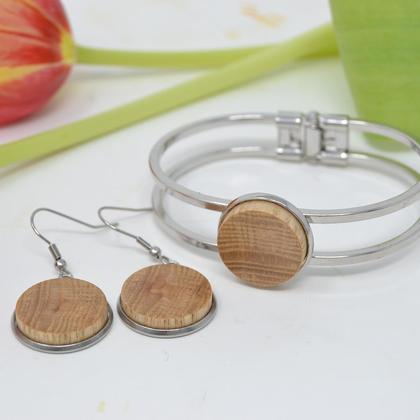 Holz Schmuckset Armreif Ohrringe Esche Armkette Ohrschmuck Geschenk