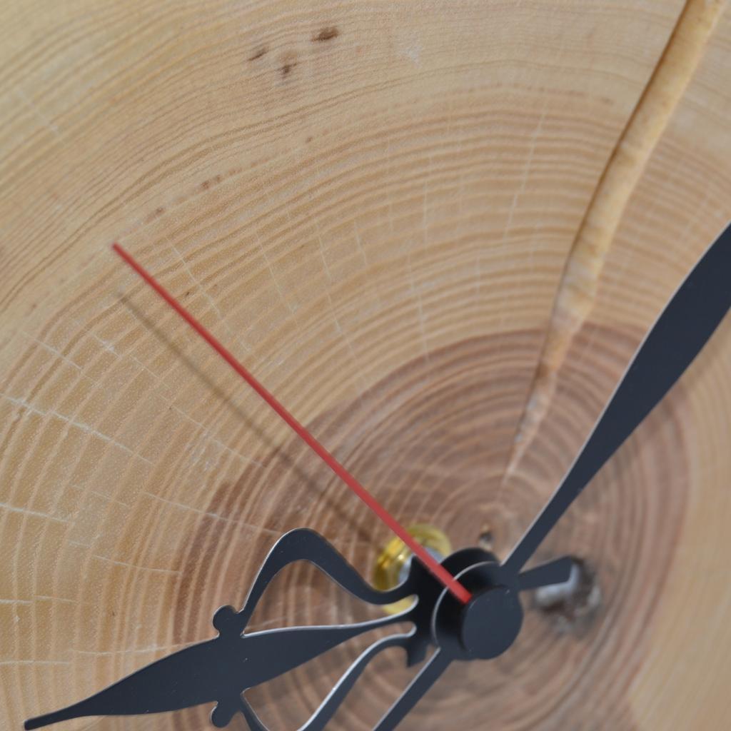 Handgefertigte Holz Wanduhr aus schönem Eschenholz. Es handelt sich hier um ein handgefertigtes Unikat, Made in Austria. Liebevoll von Hand gefertigt. Größe 25x23 cm Oberfläche: geschliffen und lebensmittelecht geölt Uhrwerk: hochwertiges, flüsterleises Quartz Uhrwerk (2 Jahre Garantie!) Lieferumfang: Baumscheibe, Uhrwerk (ohne Batterie), Zeiger, Wandhaken Das Uhrwerk wurde an der Rückseite eingefräst, wodurch es mit dem Holz abschließt. Daher ist eine problemlose Wandmontage möglich. Wissenswertes zu Eschenholz: Eschenholz ist sehr vielseitig und wurde oftmals für Werkzeugstiele,Skiproduktion etc... verwendet. Heute findet Eschenholz auch im Möbelbau, Innenausbau, Parkette, Stufenbau, etc... Einzug. Der Eschen-Anteil in Österreichs Wäldern ist verhältnismäßig gering (ca. 1 %) und der Eschenbestand ist durch einen eingeschleppten Pilz stark bedroht. Aber keine Angst, diese Esche wurde nicht für diese wunderschöne Uhr geschlägert ;) Eschenholz gilt als eher schwer und hart, zäh und elastisch. Die Esche ist bis zu Höhen von 1.200 Metern anzutreffen und wird bis zu 250 Jahre alt. Sie kann bis zu 40 Metern hoch werden und einen Stammdurchmesser von 2 Metern erreichen. Weiters hat die Esche auch Ihren Platz in der nordischen Mythologie (Weltenesche Yggdrasil). Das Holz dieser Uhr ist hell und warm - und dennoch durch einen ehemaligen "Untermieter" individuell geprägt und ein absolutes Unikat. Geben Sie Ihrem Zuhause einen individuellen Touch, den sonst niemand anders an seiner Wand hängen hat. Hol dir ein Stück Natur ins Haus! PS: Holz ist ein Naturprodukt, leichte Abweichungen in Form, Farbe oder Maserung oder Risse vorbehalten und kein Reklamationsgrund! Eine tolle Geschenksidee zum Geburtstag, Weihnachten oder anderen Anlass.