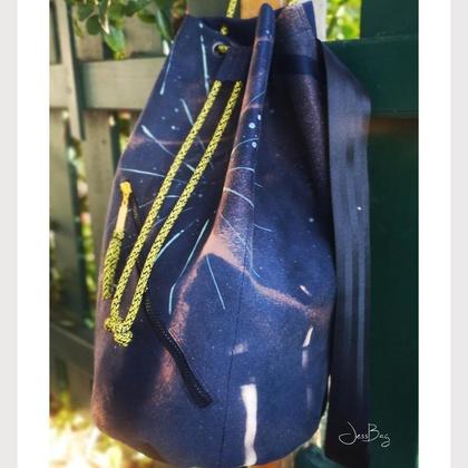°SeaBag° -robuster Cabrioverdeckstoff, gebleicht und gefärbt -ca 40cm hoch und Dm ca 28cm -Träger aus extra breitem Gurtband