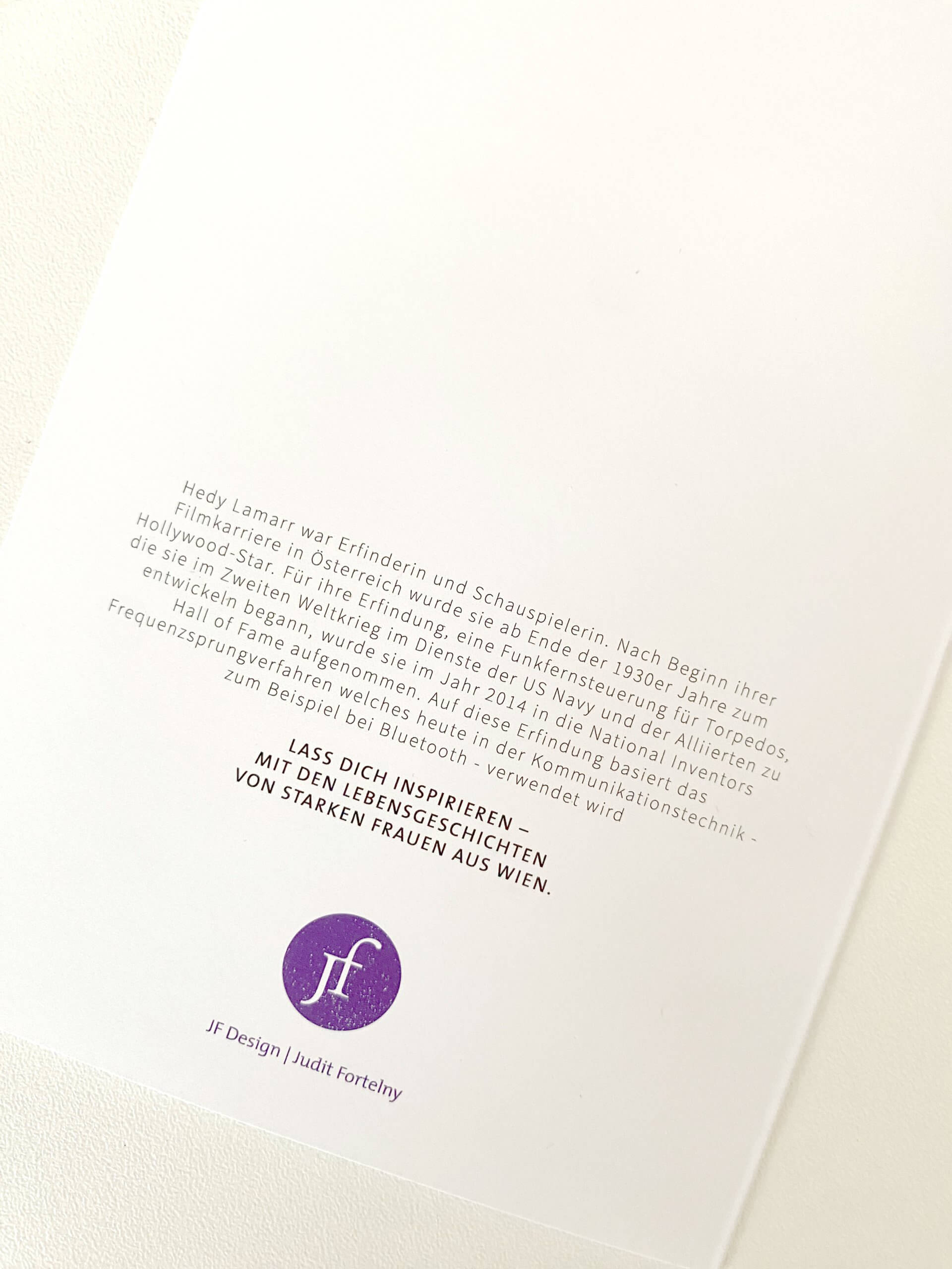 Grußkarte starke Frauen Portrait Hedy Lamarr Lass dich von den Geschichten von starken Wiener Frauen inspirieren! Diese Karte zeigt ein Portrait der Schauspielerin und Erfinerin Hedy Lamarr – ihre bemerkenswerte und inspirierende Lebensgeschichte ist auf der Rückseite abgedruckt. * * * Design: JF Design / Judit Fortelny Papier 220g Premiumkarton Format: A6 Hergestellt in Österreich Karte wird schön verpackt mit passendem Kuvert geliefert