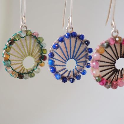 Bunte Fäden wickeln sich elegant um und über das Edelmetall. Kompliziert und doch verspielt. Drunter und drüber so wie das Leben. Mit diesen leichten, bunten und einzigartigen Schmuckstücken ist man nicht zu übersehen! Material: Sterlingsilber 925 rote Granate Perlseide Größe: ca. 1,5cm