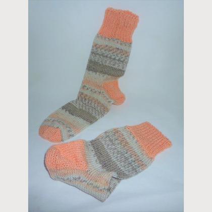 Handgestrickte Socken Größe 38/39 Lachs/grau/beige