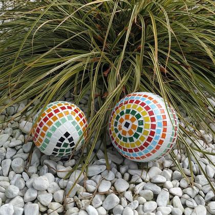 Liebevoll gestaltete Kugel, perfekt für Ihre Gartendekoration. Stein für Stein aufgeklebt. Durchmesser von ca. 10 cm Auch andere Größen verfügbar! Farbwünsche werden gerne berücksichtigt.