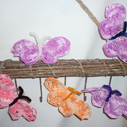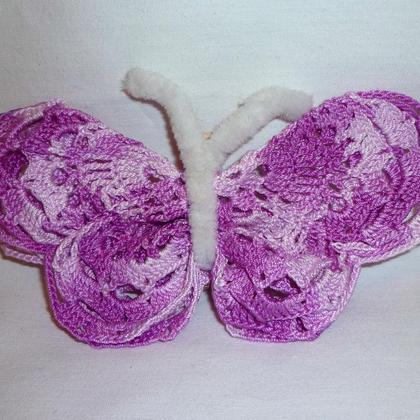 Liebevoll gehäkelter Schmetterling sucht neues Zuhause. Zur Befestigung mit Holzklammer. 14 cm breit