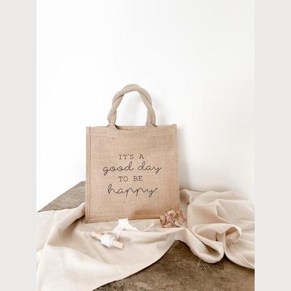 Midi Jutetasche „it‘s a good day to be happy“