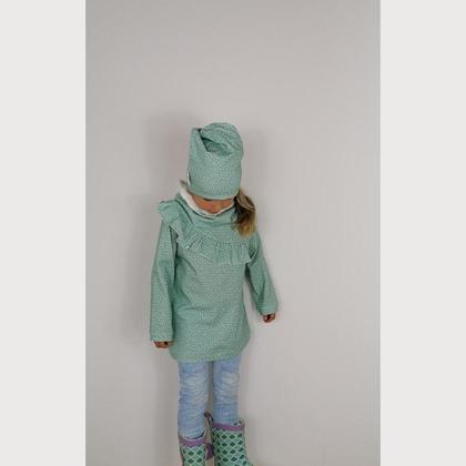 Kinderhaube und Halsloop türkis Produktdetails Set aus Jersey türkis 95% Baumwolle 5% Elasthan Kopfumfang: 44,46,48,50,52,54,56,58 Pflegehinweise: Schonwaschgang bei 30 Grad waschen Nicht im Trockner trocknen Keine Bleichmittel Mäßig heiß bügeln Handgenäht, Haube, Loop, Kindermütze