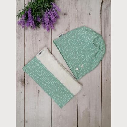Kinderhaube und Halsloop türkis