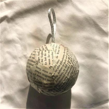 Christbaumkugel Dies ist ein Upcyclingprodukt aus alten Büchern - genauer gesagt, aus dem, was bei der Produktion meiner Bücherlampen übrig bleibt. Die Bänder zum Aufhängen können und werden variieren Es gibt sie in 3 Größen 5cm =Klein 8cm = Mittel 10cm =Groß