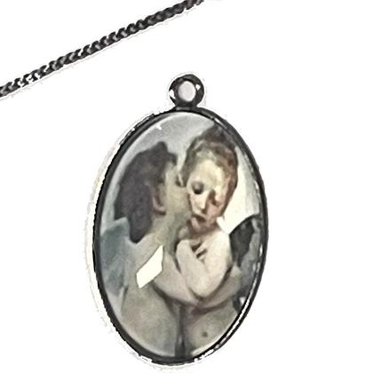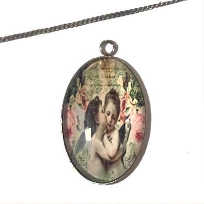 Kette mit Glascabochon Engelsmotiv Bussi in 3 Varianten erhältlich (Fotos in Reihenfolge der Varianten) 1) das Bussi 2) das Bussi mit Flügeln 3) das Bussi mit Rosen