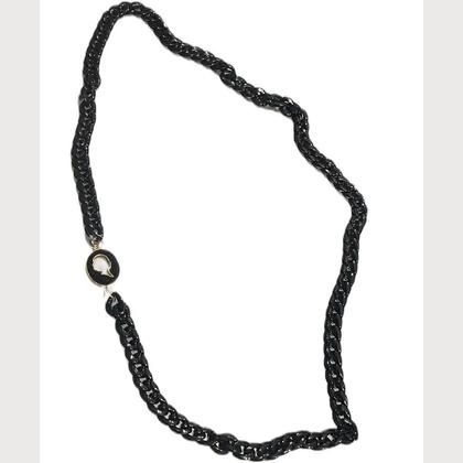 Lange Glieder-Ketten aus Acryl, die auch doppelt getragen werden können Verbunden mit einem emaillierten Kamerelief Eine Hommage an meine Oma