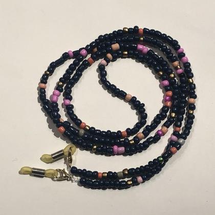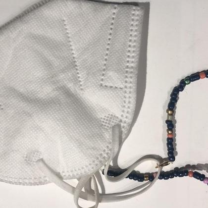 Diese Kette aus Perlen kann entweder als Halskette getragen werden. Oder als Brillenkette oder man hängt seine FFP2 daran und muss sie nicht immer suchen