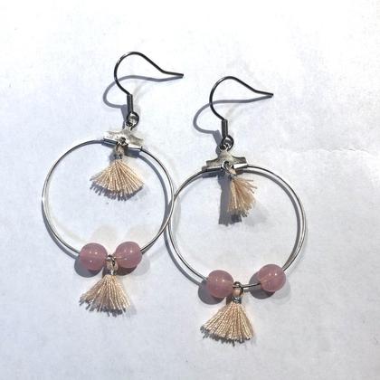 Schlicht, aber irgendwie doch überhaupt nicht. Metallohringe mit kleinen Quasten und Glasperlen