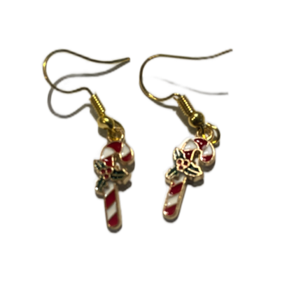 Ohrringe mit emaillierten Anhängern Zuckerstange in rot und grün gehalten oder in Zuckerstange in rot und grün gehalten