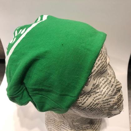 Jeder dieser Beanie-Hauben ist ein Einzelstück- da jede aus einem ausrangiertem Shirt entstanden ist. Die Beanies sind Wendemützen, teils unterschiedlich in den Farben, teils eine Seite bedruckt, die andere Seite uni.